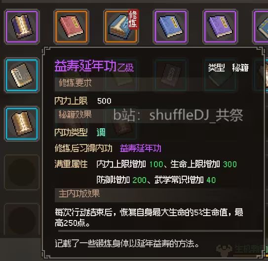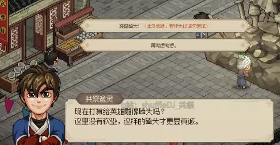 回去大雕像 补满体力 有软垫时磕10下(原来是100下你们思考惨不惨)给紫色心法 益寿延年功