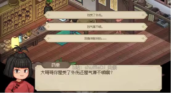 不护送就没东西了 回城跟小童对话告知(也没白嫖的药了)3天后郎中才回药店卖药