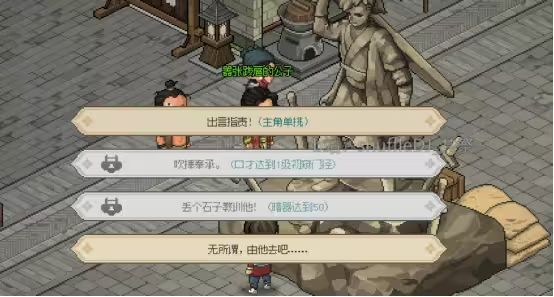 ~~~~~~~~~~~~~~选一再揍他一顿 名声+10 每天可以打一次 打3次后认你做大哥好感拉满 之后可以直接进将军府找将军 入队给一个蓝色扇法游龙戏凤