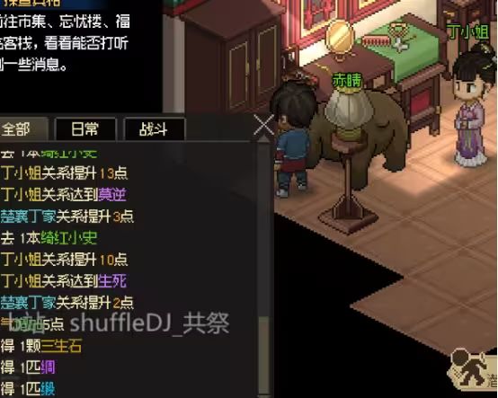 调节获得1950点历练 三教关系+5 然后接到后续 去市集 忘忧楼 客栈打听消息