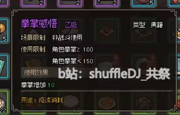 选1得一本拳法感悟 邋遢张好感10 长春子好感5