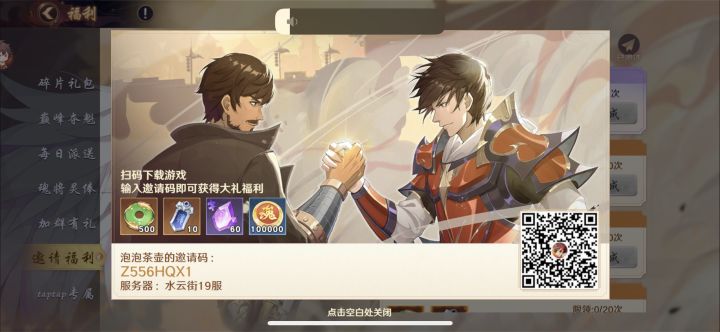 以下是邀请码填写可获得十连抽在右上角福利里面绑定好友处填写Z556HQX1