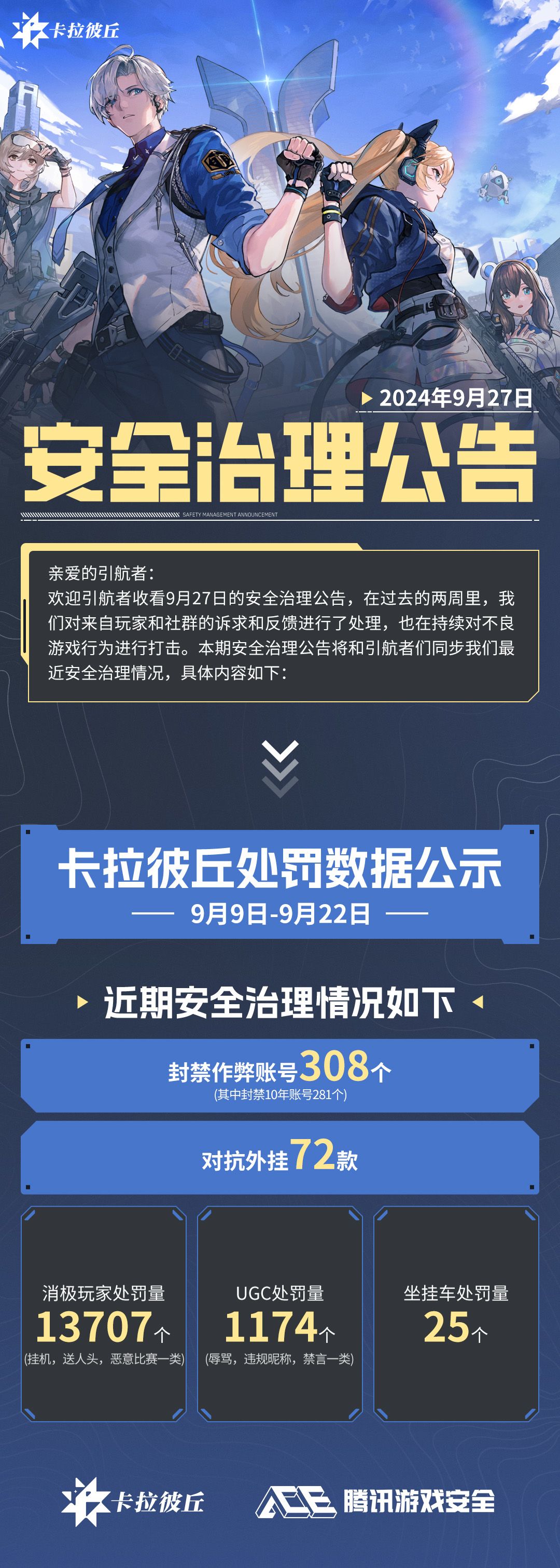 欢迎引航者收看9月27日的安全治理公告,在过去的两周里,我们对来自玩家和社群的诉求和反馈进行了处理,也在持续对不良游戏行为进行打击。本期安全治理公告将和引航者们同步我们最近的安全治理情况,具体内容如下: