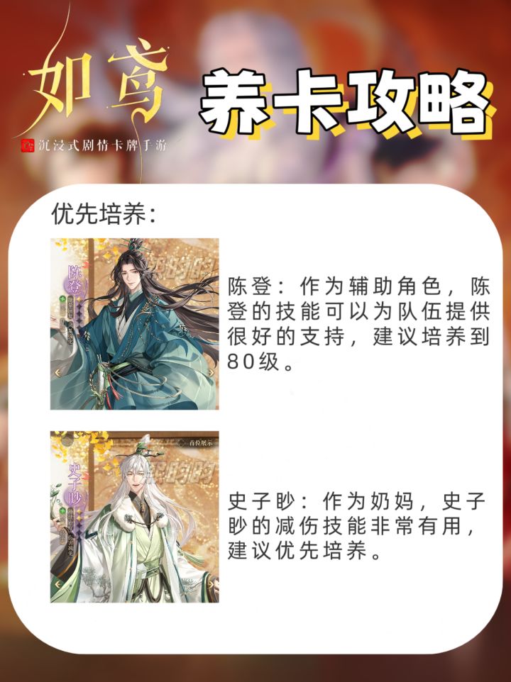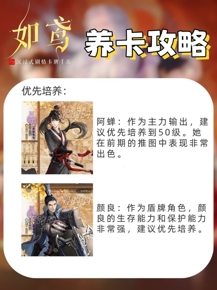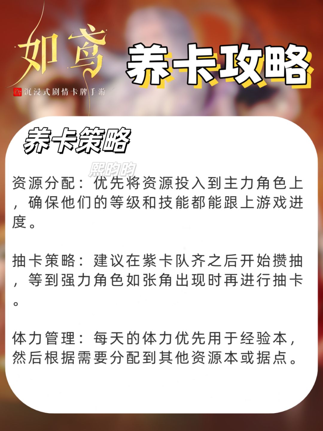 在《如鸢》中,养卡是非常重要的一环,以下是一些综合的养卡攻略,帮助你更好地进行角色培养:
