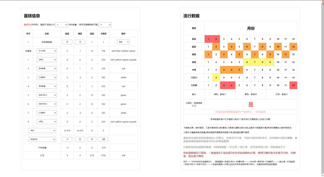 做了个蛋糕编辑器,轻松配出高流行甚至满流行(45格)配方,自定义产地,员工,盘子,基底,食材。