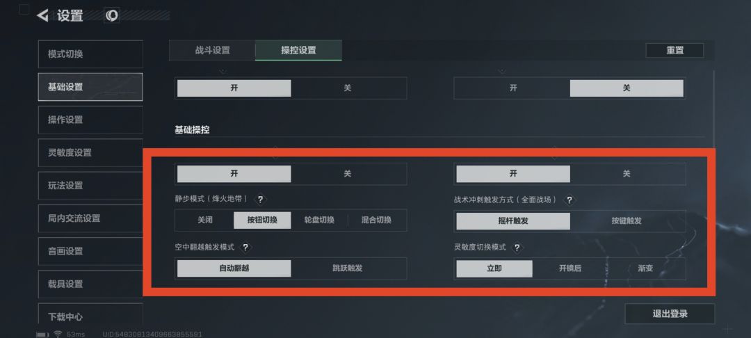 基础操控里面玩家可以根据自己平时的玩法调整为更适合自己的模式