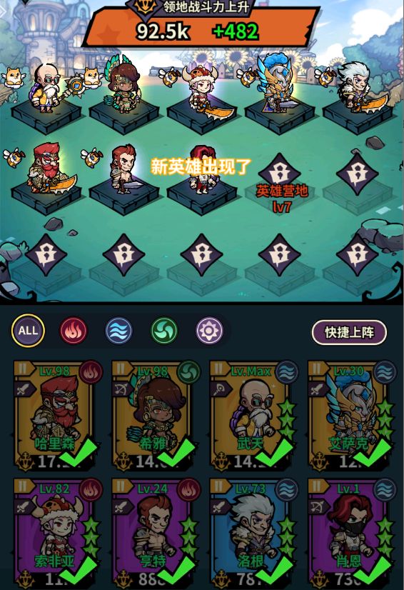 1)地下城挑战的时候除了英雄的战力之外,可以根据这一关敌人的元素和站位来进行对应的英雄调整,或有奇效
