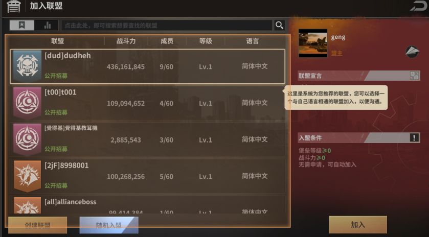 二、寻找更多幸存者共同抵御末日灾难值得庆幸,你不是末世里唯一的幸存者。其他幸存者已经抱团求生建立起属于自己的社区,请您尽快结束第六天的日记本任务,加入强大的联盟,共同抱团求生抵御末世的改造人威胁。在联盟里,盟友之间可以互相帮助他人的避难所建造和科技研究等,若遇到强大的改造人攻击或外敌的入侵,盟友可立即派遣部队进行增援。对于初入末世的萌新指挥官,联盟是你最坚实的后盾。如有任何疑问,也可以多向联盟里的大佬们多多请教喔。