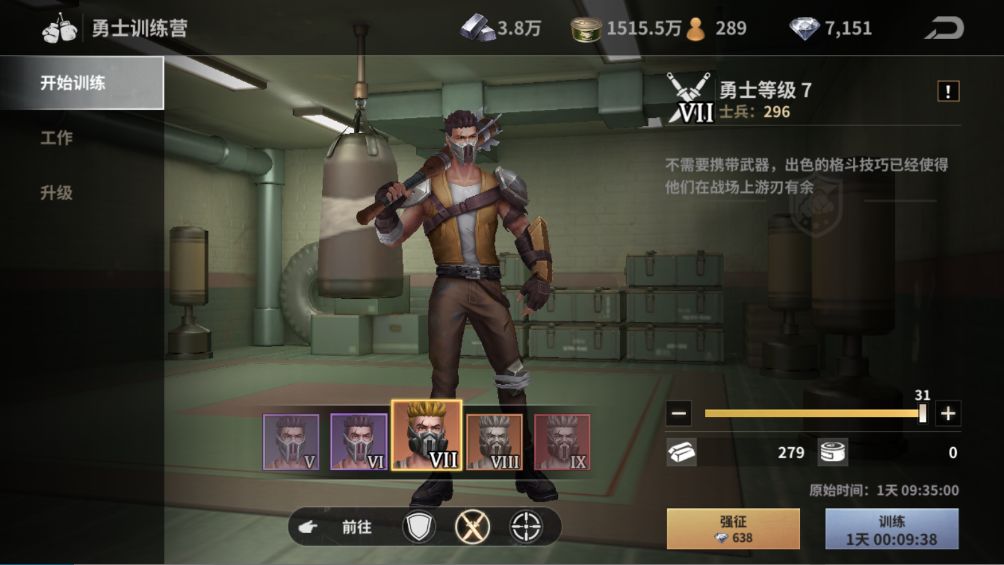 四、训练士兵积存力量末日的灾害和外敌的入侵不会就此停止,维持好避难所的正常运转后,迅速填充抵御外敌的力量迫在眉睫。射手、勇士、防卫者,三种兵种各具不同的优势。射手偏向战术攻击,勇士偏向攻击,防卫者偏向防御。升级训练营和军营的等级可以提升士兵的等级和士兵的数量上限,有助于增强避难所的战斗力,具有强大的战斗力对外敌可产生一定的震慑作用。