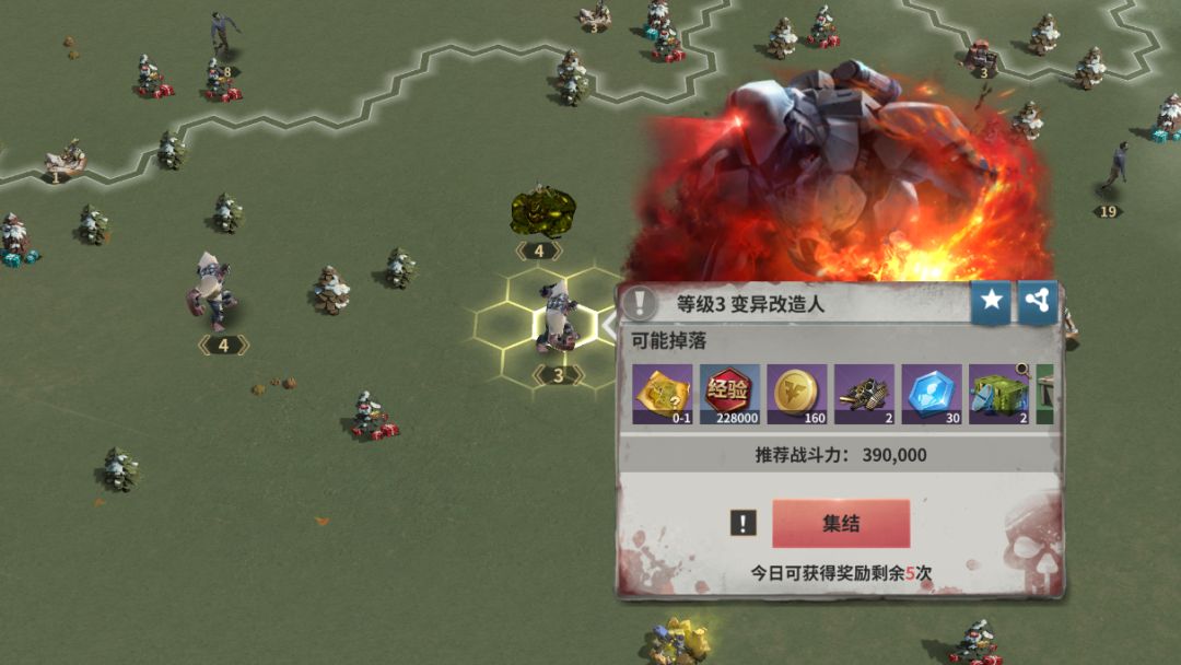 变异改造人异常强大,需要加入联盟与盟友集结才可发起进攻,发起及参与集结均消耗编队的耐久。