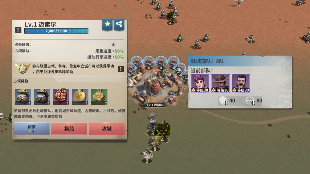 最关键的玩法来咯,加入联盟和联盟成员一起集结攻城,占领不同的城市,会在赛季结束之后获得丰厚的奖励。