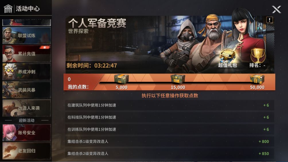 时刻关注活动中心的活动,许多新手限时活动会慢慢结束;同时也会推出别的活动,几级参与并且完成活动可以获得大量游戏内的关键资源或道具。