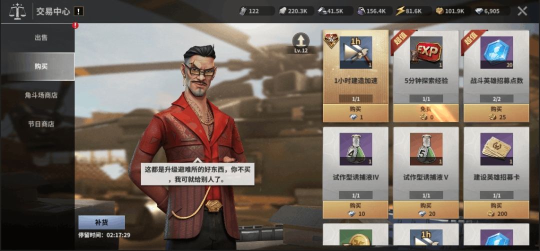 交易中心可出售指定资源换取黎明币,也可消耗资源购买商品,甚至会刷出免费的商品。
