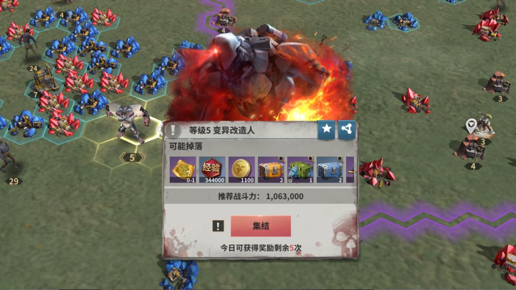 击杀后参与的指挥官均可获得奖励,且奖励相同,击杀的变异改造人等级越高奖励越好,每日获取奖励次数有限。
