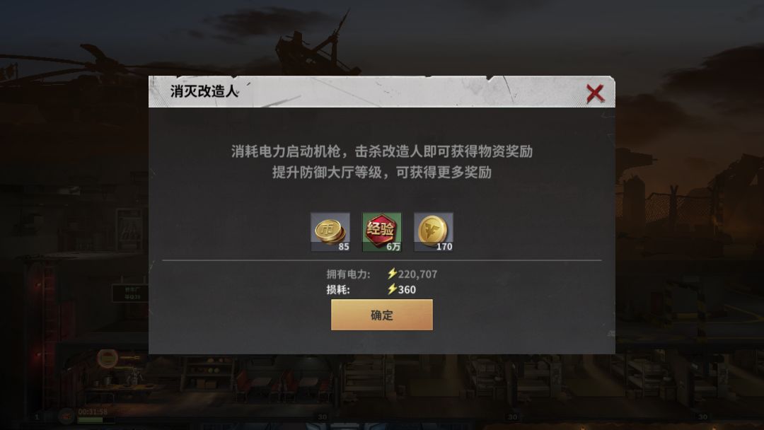 可消耗电力启动机枪,获取物资奖励。物资奖励随防御等级提升而提升。
