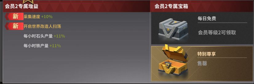 VIP2:采集速度+10%、开启世界改造人扫荡