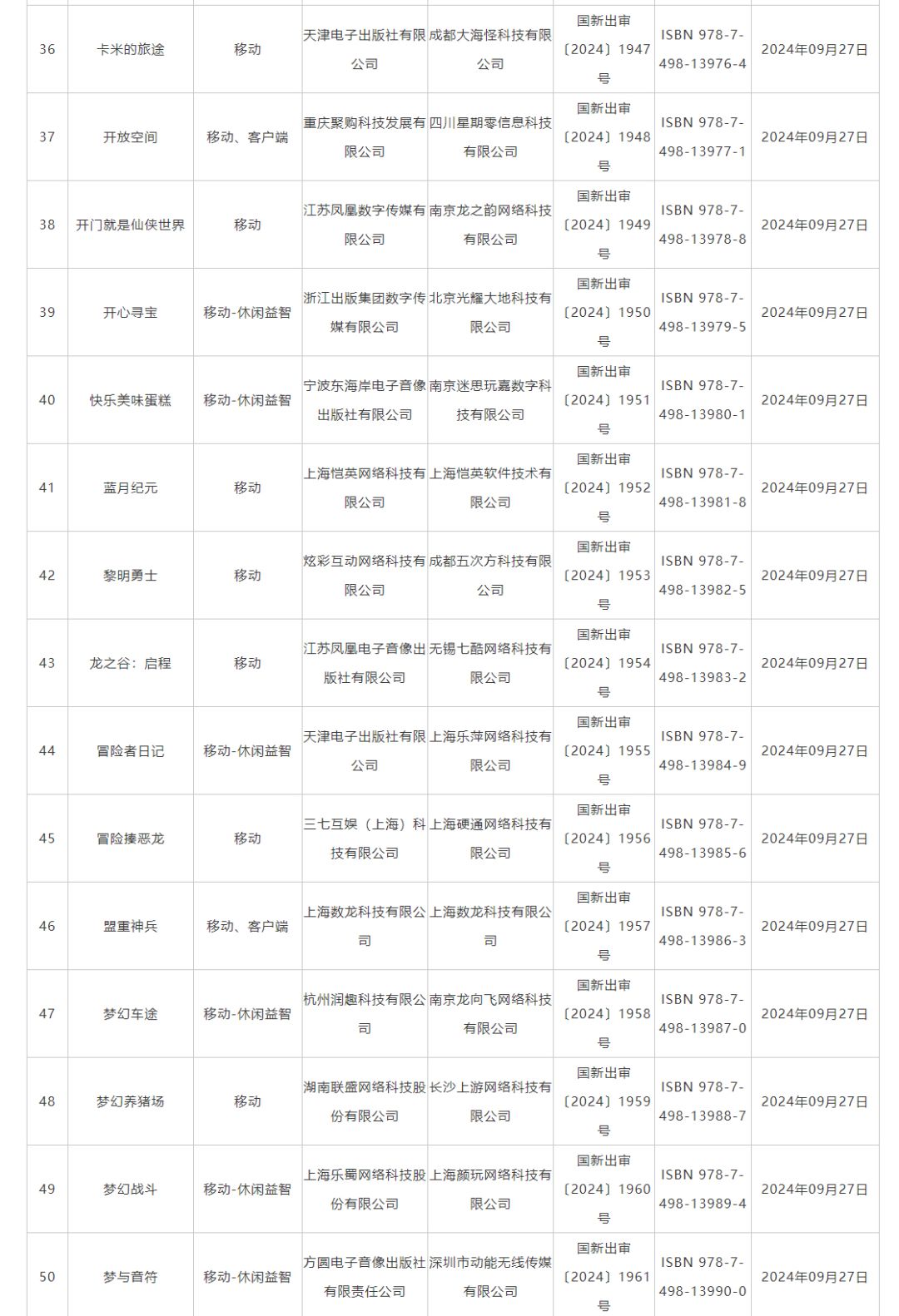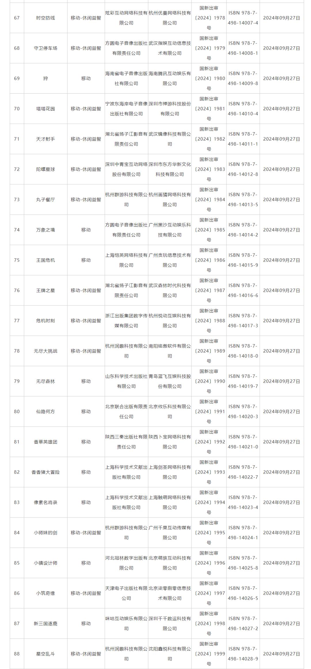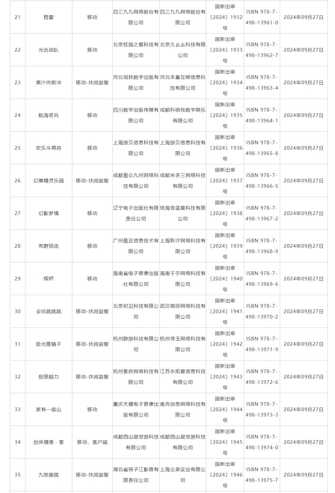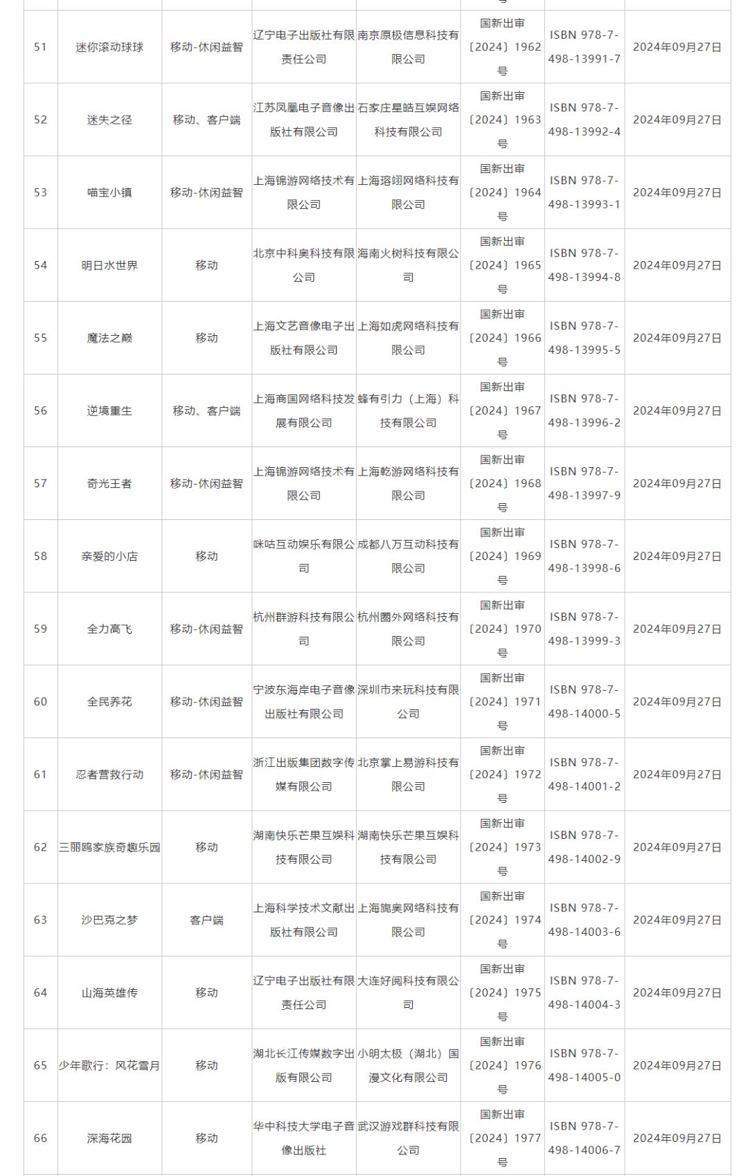 9月国产网络游戏版号发放,109款游戏获批