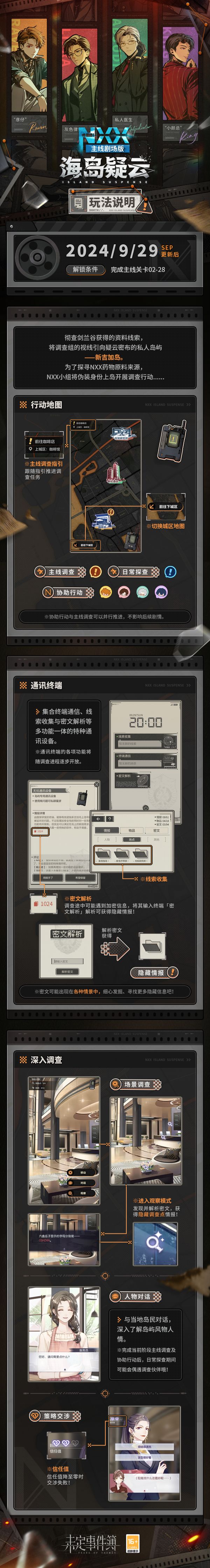 2024年9月29日更新后,全新主线剧场版活动「NXX-海岛疑云」即将开启!