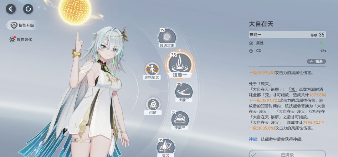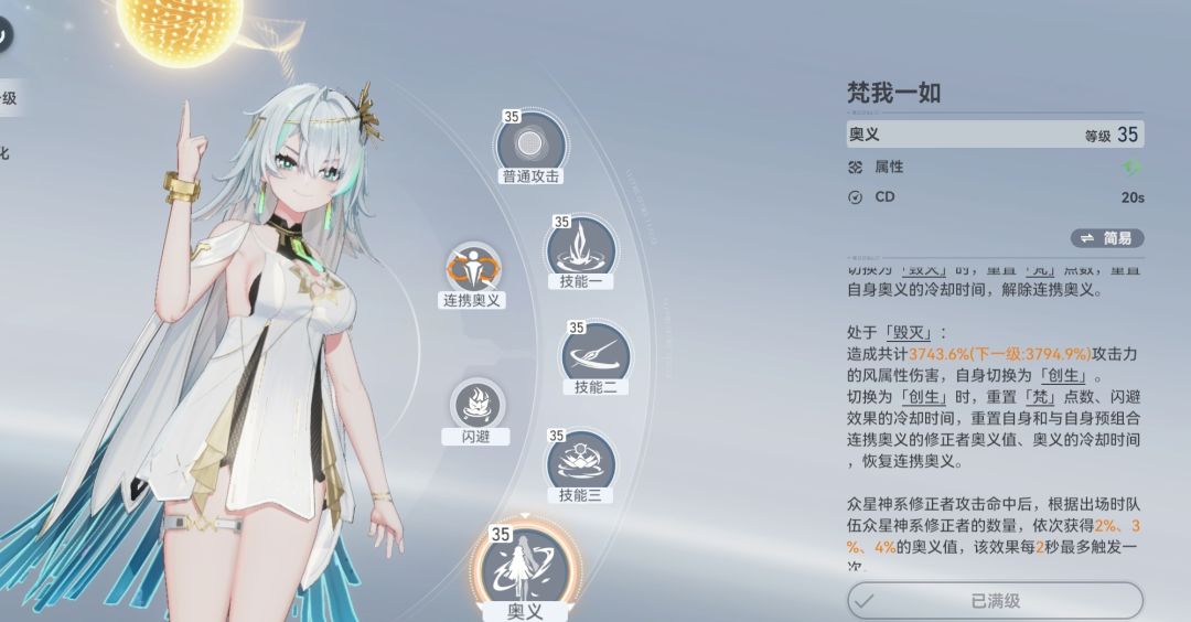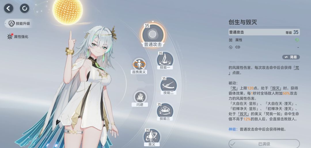 1技能创生和毁灭形态不同所需要的机制都一样,都是需要满梵点数,只是图标不一样。看动画