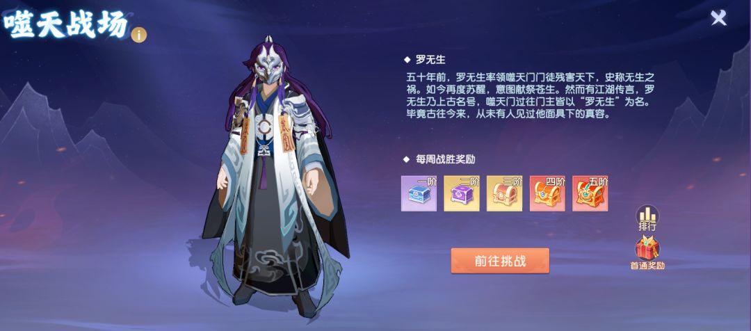 【玩法规则】噬天战场共分5个阶段挑战,需要连续进行5场战斗。