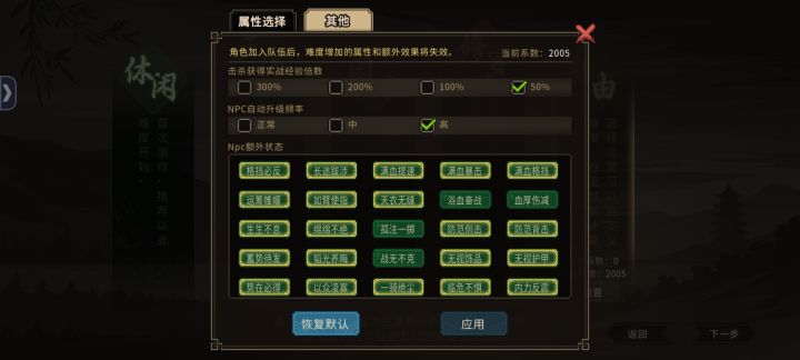 自由难度配置如图2、图3;天赋选天煞孤星、影子护卫、扮猪吃虎、剩下的给集气。加点还是敏捷体质臂力,进游戏后,记得武道点给山,还有剩的就给林,反正就是加格挡。