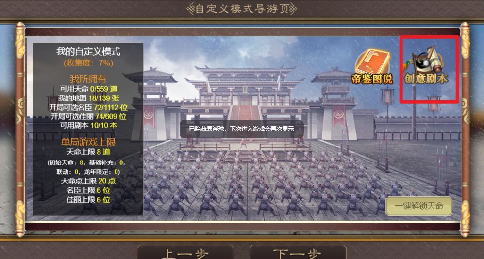 ◆创意剧本入口:前往自定义模式-创意剧本-我的-创建剧本