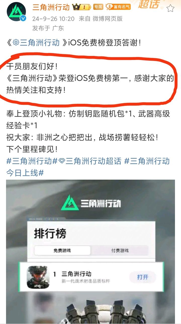 9/26号,《三角洲行动》正式公测上线,当天荣登iOS免费榜第一❗❗❗