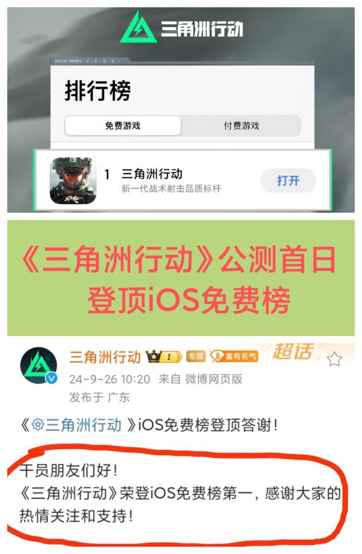 公测首日❗《三角洲行动》登顶iOS免费榜🔥🔥🔥