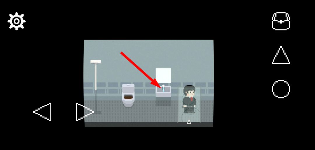在白天的厕所中,按“三角”键坐上马桶后,再按“圆形”键冲马桶,会发现有东西卡在下水道