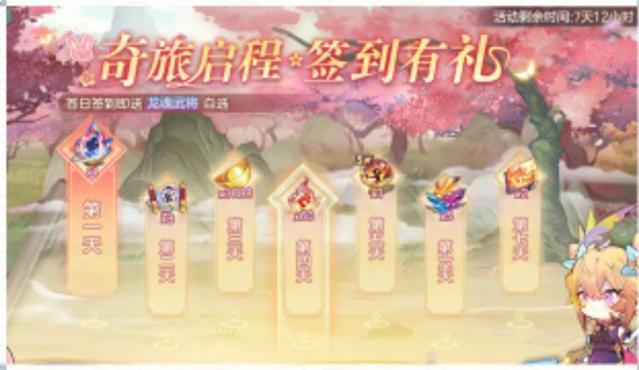 开服签到领龙魂武将自选、招募卷、元宝、神将碎片等