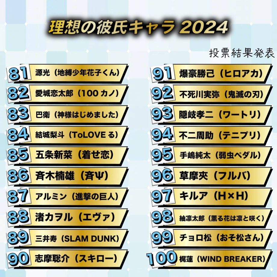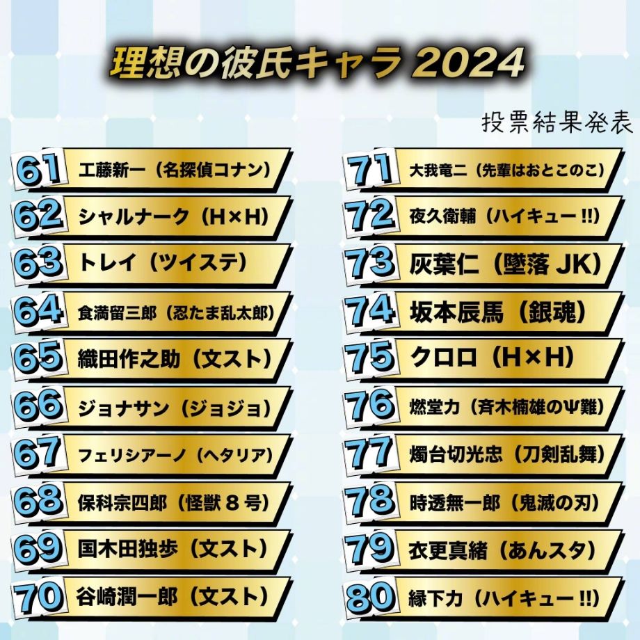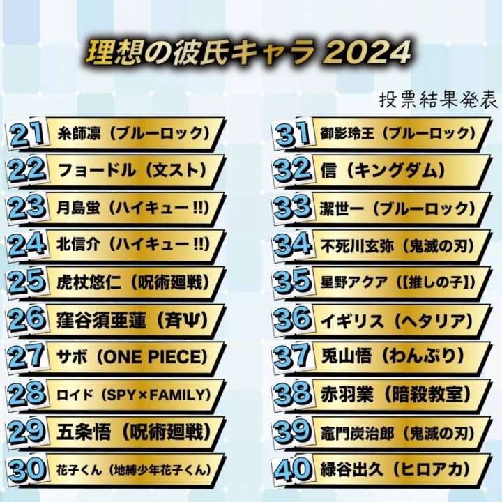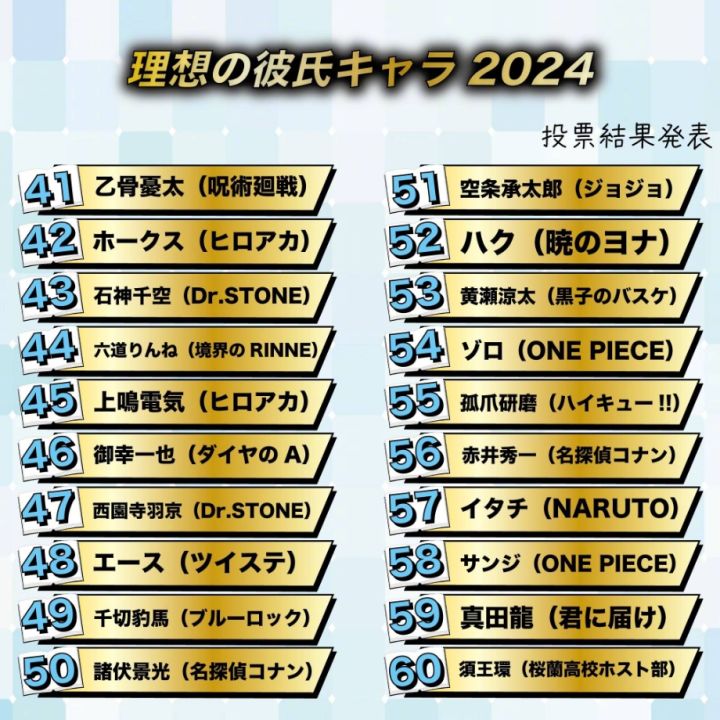 日网粉丝票选【动漫理想男友2024】TOP20🏆