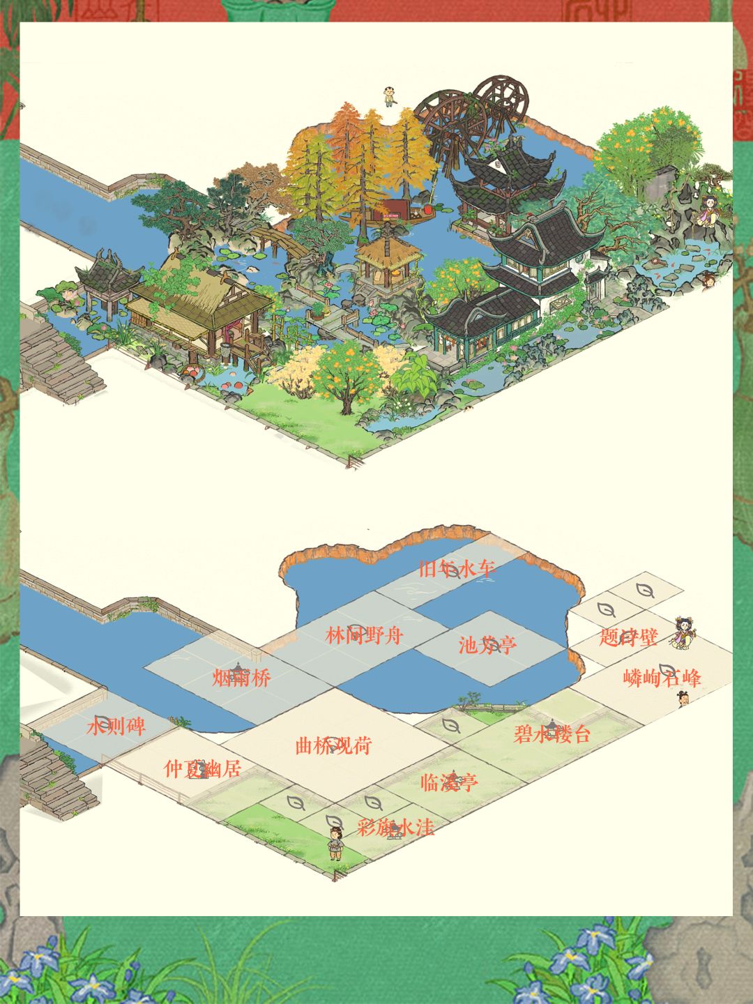 【烟雨桥】和【曲桥观荷】不仅完美衔接,更是让这个小水坑秒变大水域!