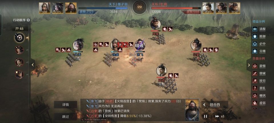 吕蒙战法:白衣渡江+烈火焚营+知人善任。韬略库:谋复善本+劝学(专属)。这哥们运气还是不错的,第二下就洗到了金书。吕蒙的先攻值高于陆逊,可以赶在连营之前朝敌方全体施加火攻,从而充分焚烧!陆逊之前习得的狂风大作,也能跟吕蒙联动大幅提升伤害效果。还有一个值得注意的亮点,就是知人善任可以正好掩护到本队伍智力最高的陆逊,减伤和抵御都能吃得到。所以,这相当于是周泰和吕蒙一前一后联手保护陆逊,偃月阵前排14%的增伤,自然是让陆逊火神附体了。