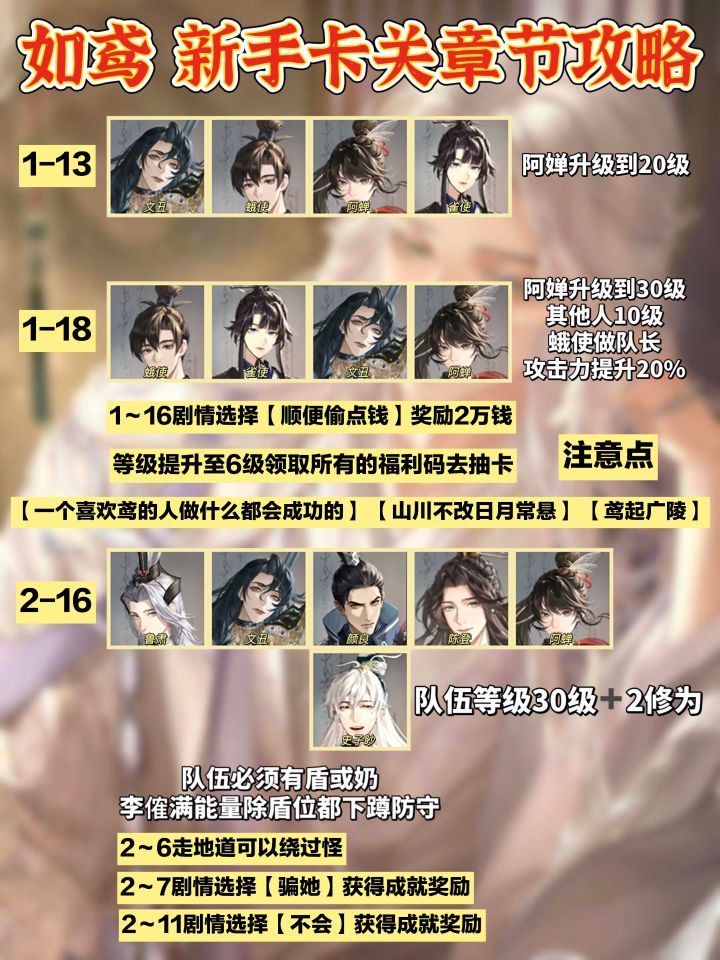 「如鸢」新手卡关必看 章节通关保姆级攻略