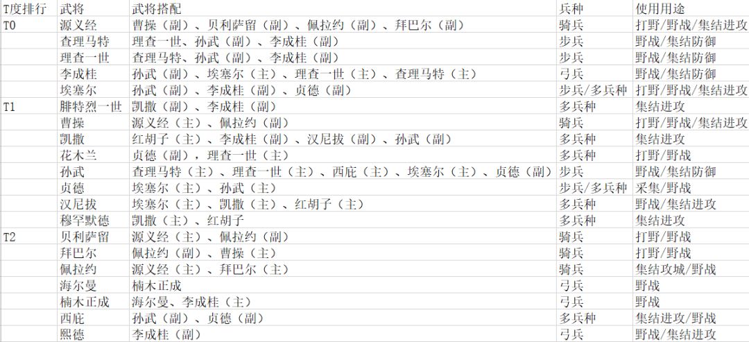 国服目前武将T度排行!