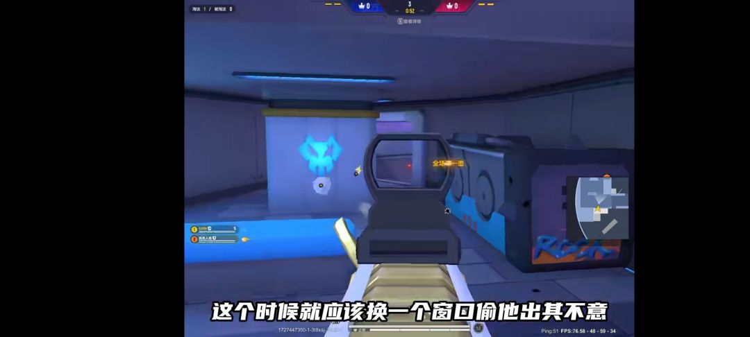 如果你如果你在侧面拉枪线的时候注意千万不要拉枪线拉得过深。一定要确定敌人没有过来,你这个时候你才能继续往前压。当路线走到1/2的时候,如果你感觉敌人也在摸侧面,并且距离你很近的时候,这个时候你可以拿胶囊进行天降