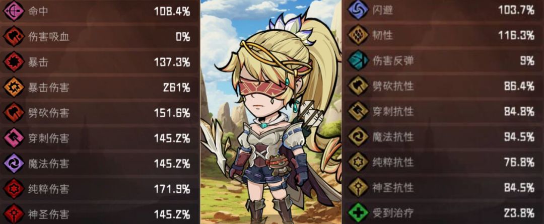 这个圣物的的好处是很全面,四维属性的提升,对很多属性都有很大的提升,弓手的话能提升20%左右的命中和全伤,还有韧性全抗生命等等的提升(具体属性看下图)