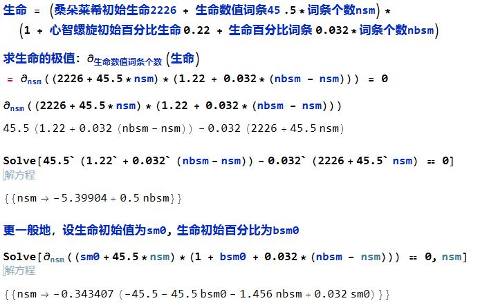 桑朵莱希满级时的生命初始值为2226,心智螺旋带来的初始生命%为0.12+0.05+0.05=0.22,所以在11个生命相关词条以前都是生命%词条收益大于生命数值词条,所以将以上的暴击爆伤词条换成8个生命百分比词条与2个生命数值词条可最大化生命。