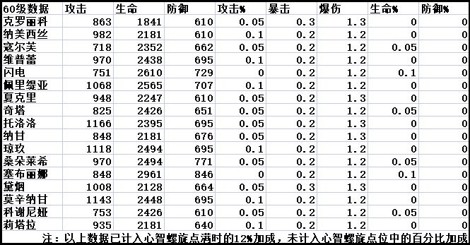 攻击数值:防御数值:生命数值:攻击百分比:防御百分比:生命百分比:暴击率百分比:爆伤百分比