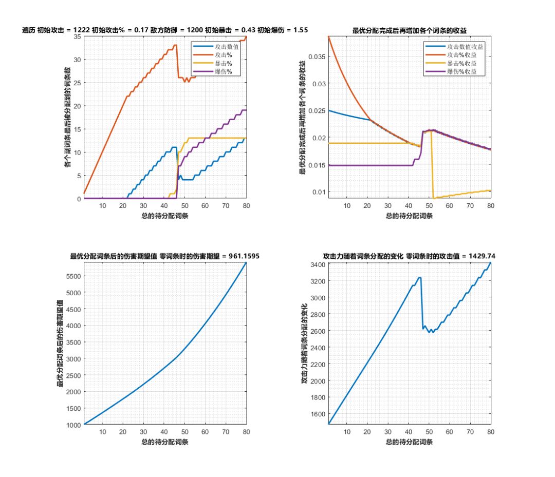 使用金石奏,且敌方防御力为1200(敌方有溢火)时:攻击%>攻击数值>爆伤>暴击