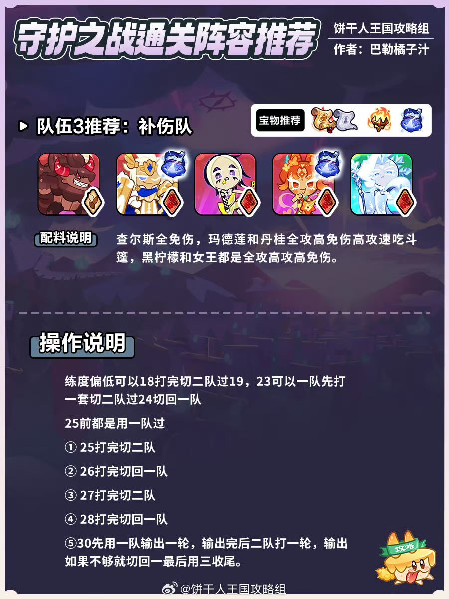 这个是3套队伍没有献祭版~通关要求比较高,除了星级配料以外,研究所中守护之战的属性研究记得点点,对于通关也有帮助~