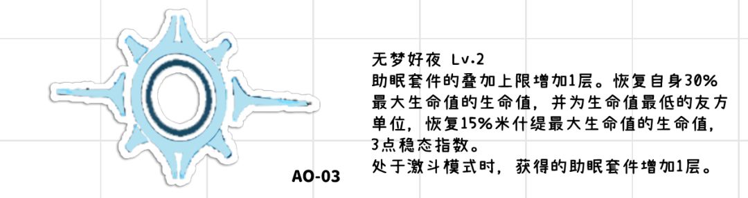 ●使米什缇获得治疗能力,在压力不大的情况下能够剔除掉其他的治疗角色,同时该椎体还能给自己回血配合上自身效果以及固件、补丁模式等等可以让米什缇的抗伤能力拉到一个非常不错的水平。功能性提高●助眠套件上限增加,小幅度的提升了米什缇自身的输出
