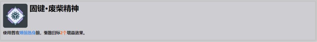 ●泛用度非常低的共键,一般情况下只能给自己使用,且低椎提升也不明显。正要说有什么其他角色可以携带的话,这里只能推荐一下女仆长之类的角色了,总之性价比不高,总体固键方面甚至可以选择只点出有用的固键,共键可以不解锁来节省资源。