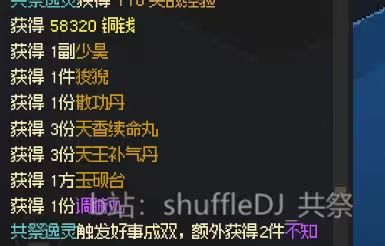 除了狻猊紫薇还有点别的装备掉 总之这个版本共祭估计金色装备出的差不多了 大家可以自己收集下 太虚之前拍卖也有不截图了