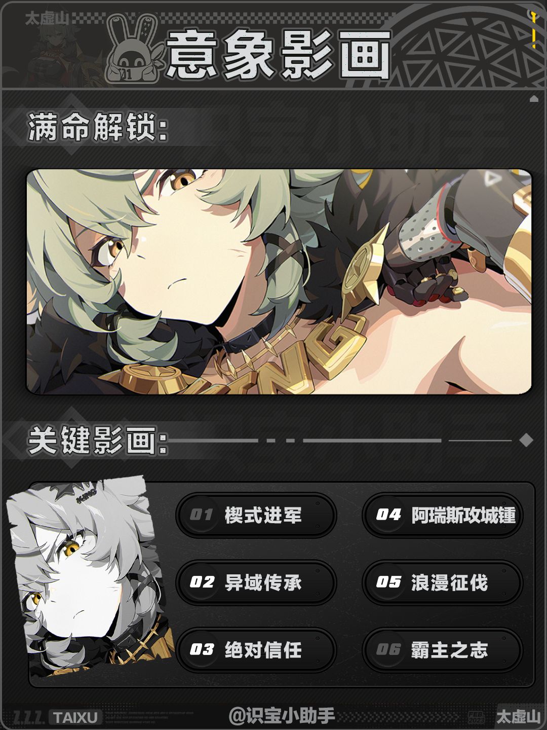 6:霸主之志:强化盾反必定暴击且造成伤害提升,此外提升自身暴击率暴击伤害。