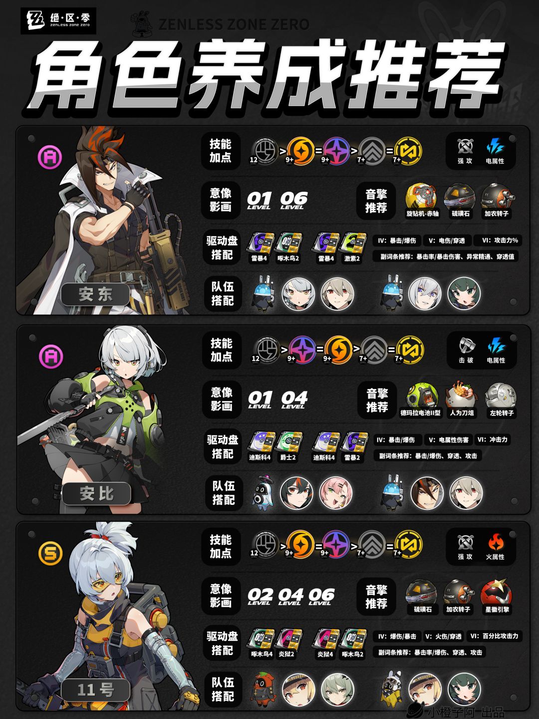 很多角色配队虽角色不同,但为同属性或同类型配队,因此很容易存在邦布相同的存在,这里橙子采取的方式是同属性或者同类型配队,会将适配的上下位替代邦布(S级与A级)分别放在两个配队,推荐邦布可相互替换。(比如飚速布与泪眼布,鲨牙布与企鹅布等等)