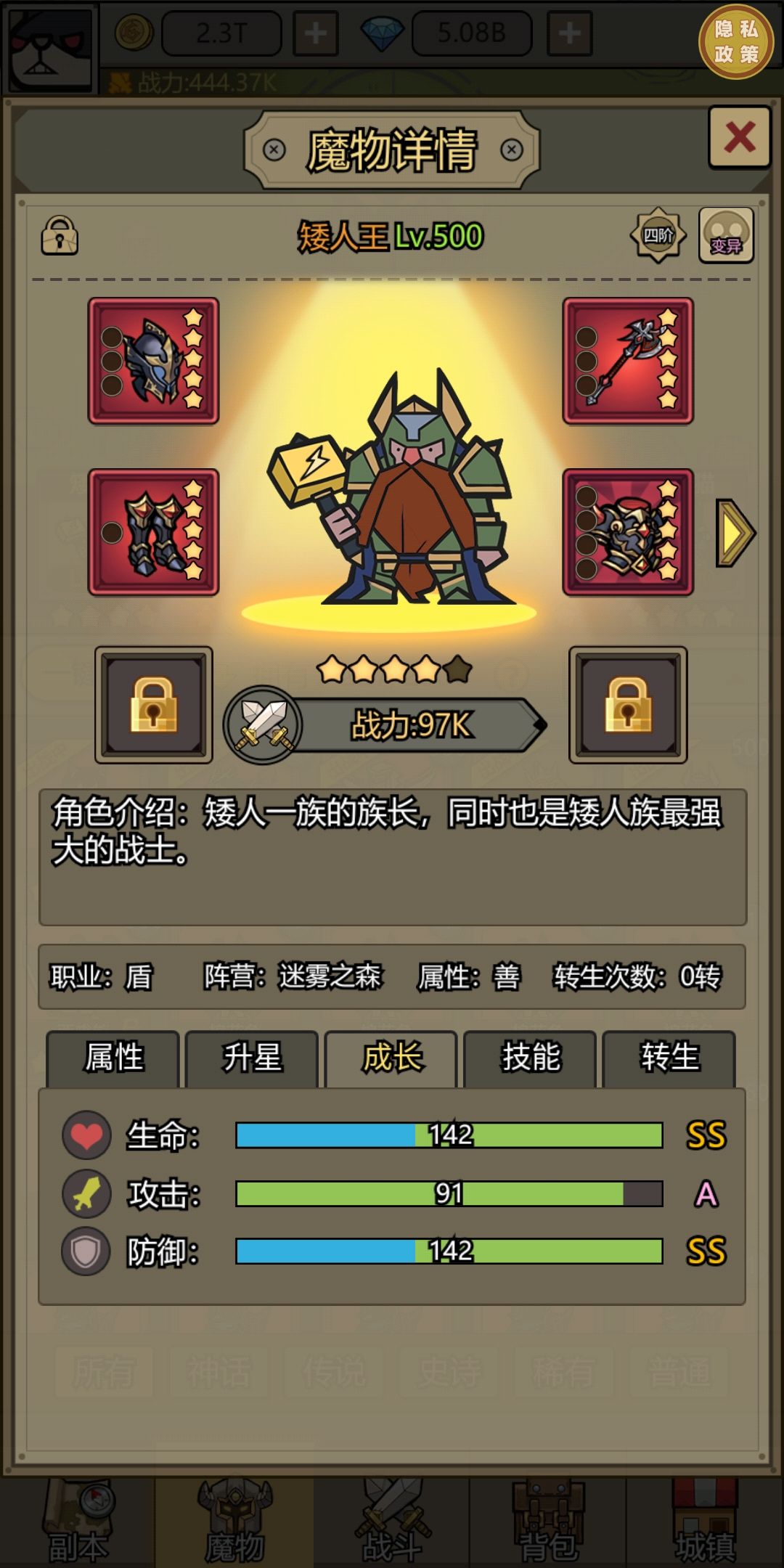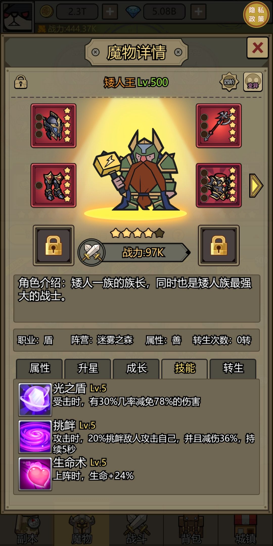 坦克:龙神,红卡,全游戏最高生命与防御,成本较大,培养困难,矮人王,橙卡,属性优异,值得培养,