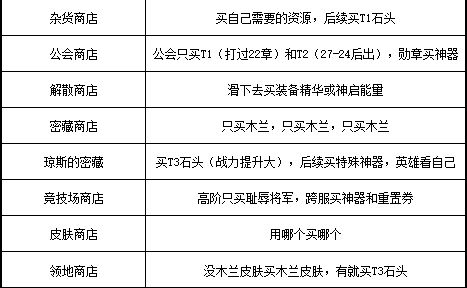 没有特别要注意的,看自己需不需要买t1就行(到一定关卡就有了,我也不知道多少),钻石足够可以每天用200钻刷新两下,买重铸券重铸装备属性。如果急需资源的话也可以看一眼。