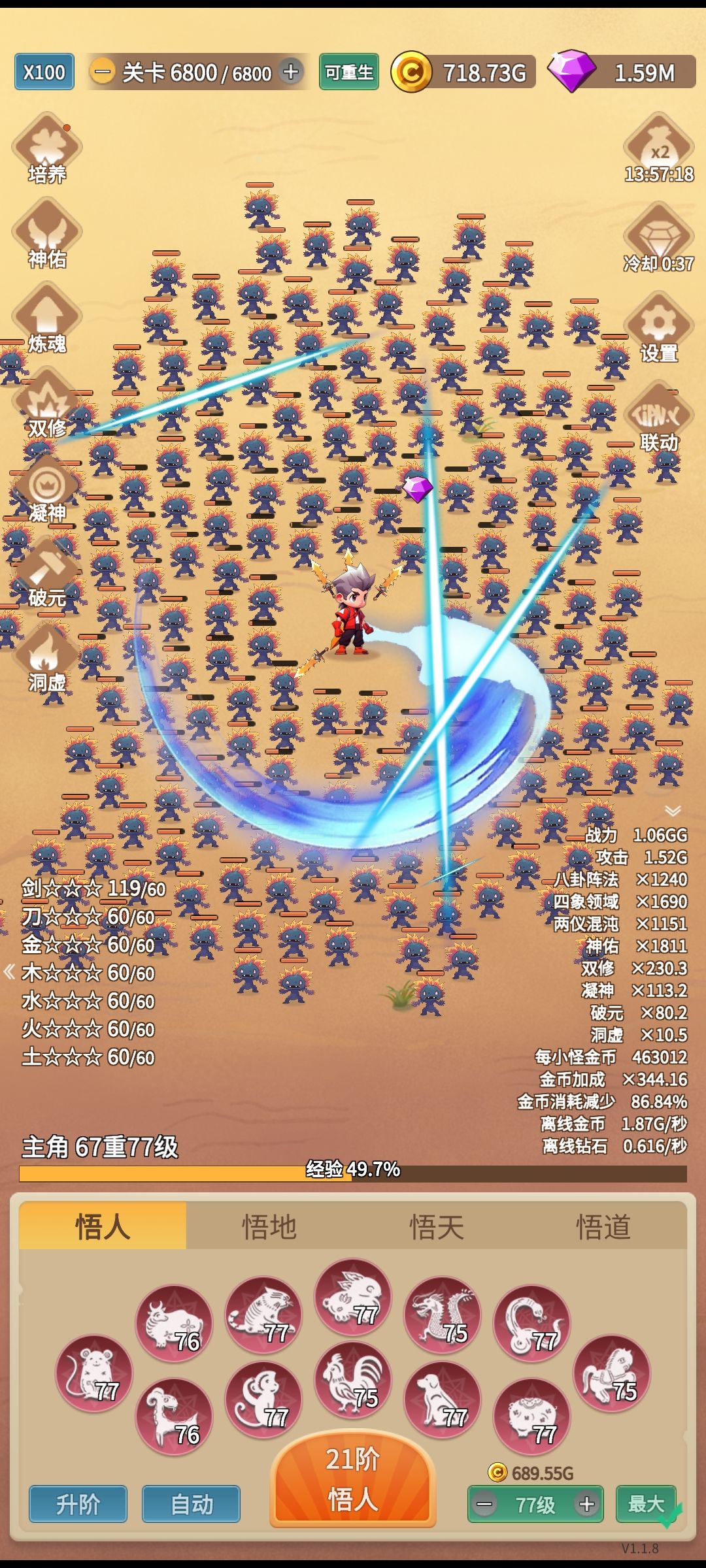 7100 刀剑+五行60 23.89GG战力 碾压过