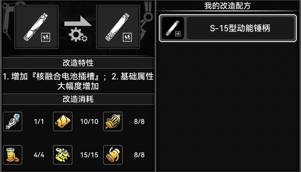 作用二:用于动力锤配件改造(大容量蓄电池为反叛军掉落)